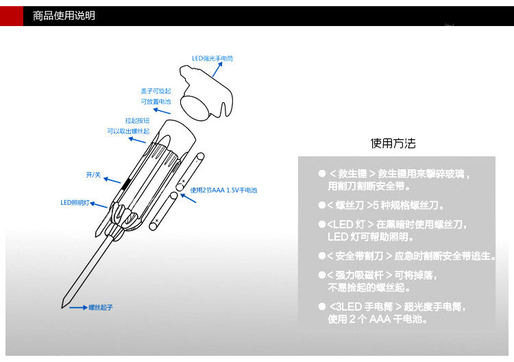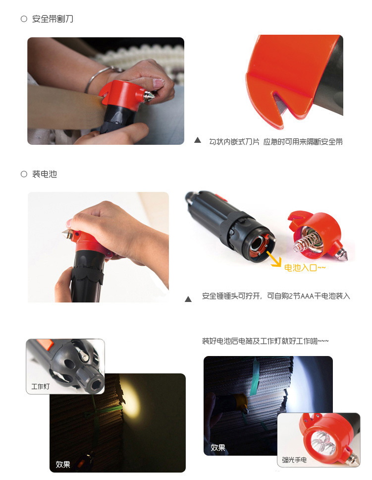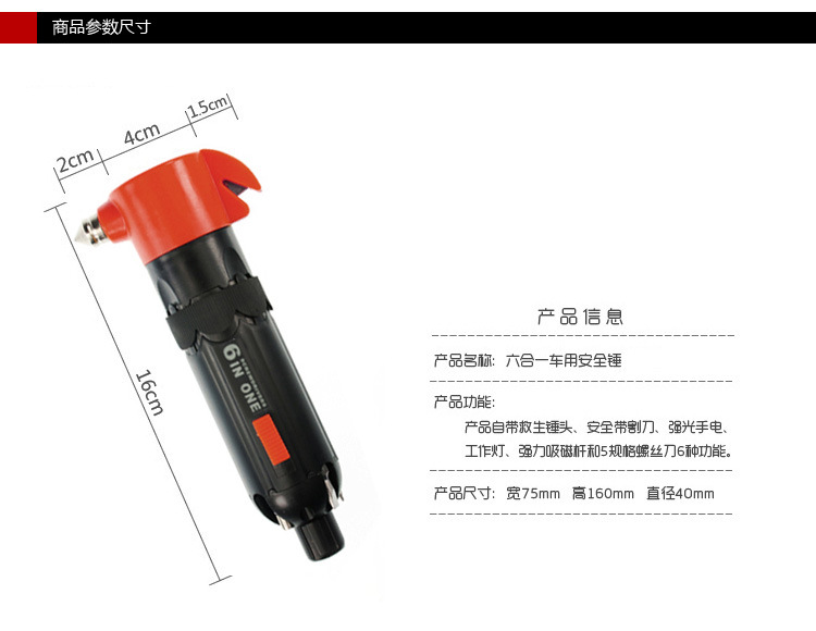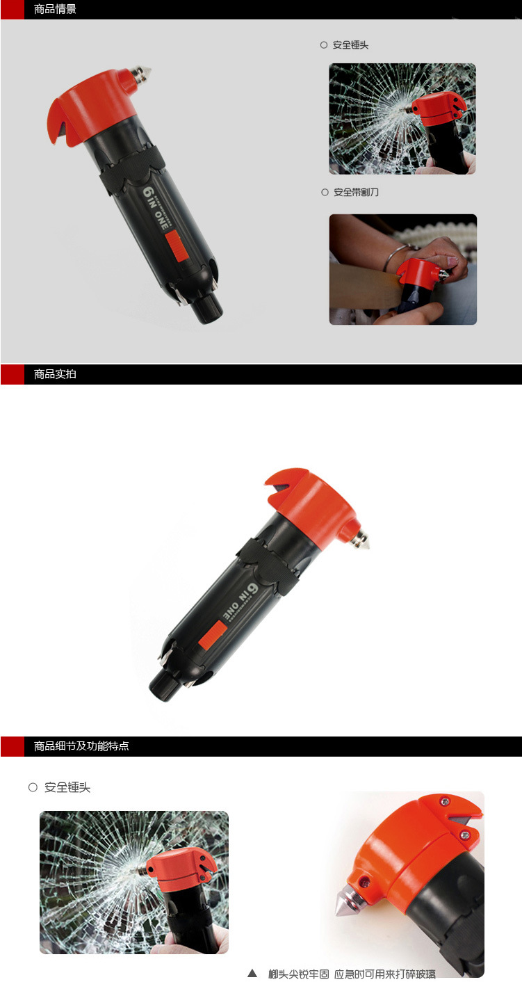 产品详情:产品称呼:六合一汽车多功能救生锤