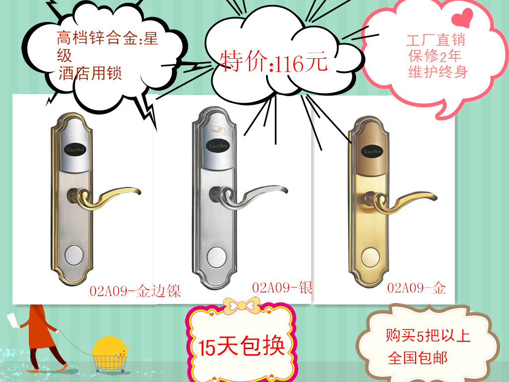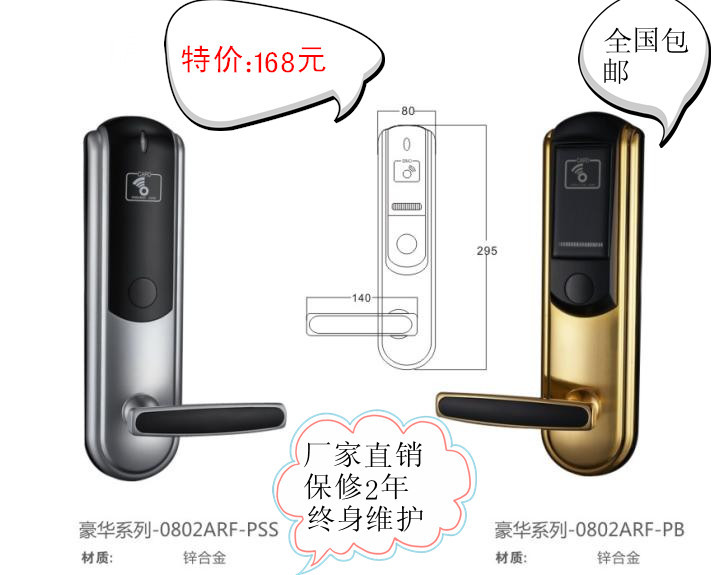 我们是厂家直销。锁也是出厂价。这款宝贝的原价是199元(同行业的特价)。当前的价钱是139.9元。您节省了60元。这是酒店锁行业。请放心购物和快乐。此宝贝购得了10套以上的运费(每把锁3公斤),为每个宝贝节省2-5元。从物流到收货地点的取货。此宝贝不含税
