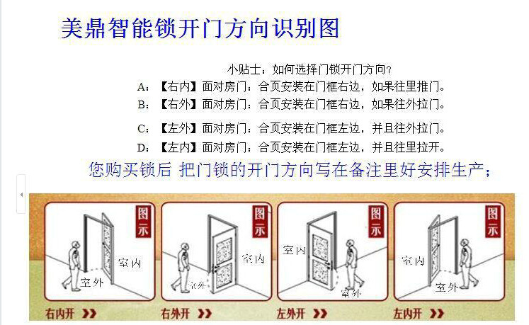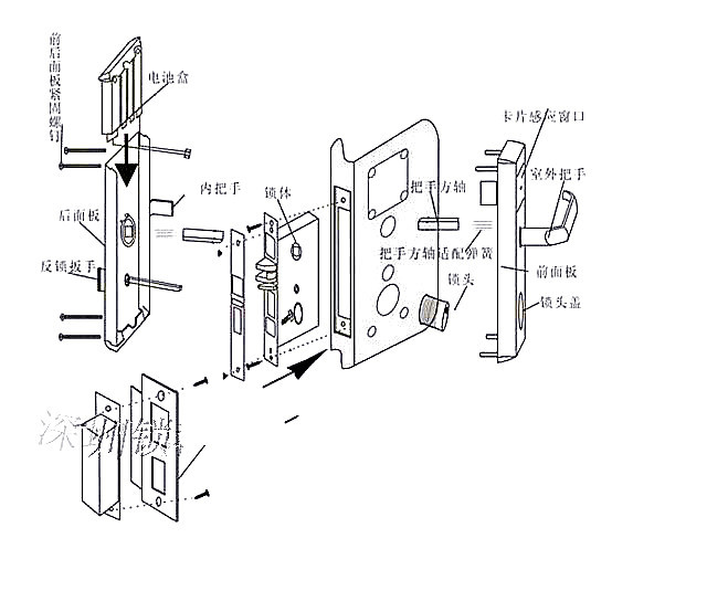 报警功能:当锁舌处于压缩状态超过4秒钟时,门锁将发出嘀嘀嘀报警,报警时间约为1分钟。
