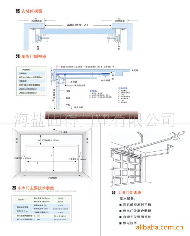 该公司是车库门的专业制造商。产品包括滑道遥控车库门,上翻工业滑门,门登门,垂直起落工业门,铝合金遥控卷帘,彩钢发泡型材门,车库门开启器,车库门全套配件;此外,伸缩门,档车器等产品,以及专业车库门装置的开发(包括模具制造)等,公司已在全国各大,中,小城市设置了代理商,并已生产全国多家大型防盗门制造商的车库门。年产达1.5万套,年产值达千万元。凭借其卓著的产品质量,周到的售后服务,受全国用户的青睐。