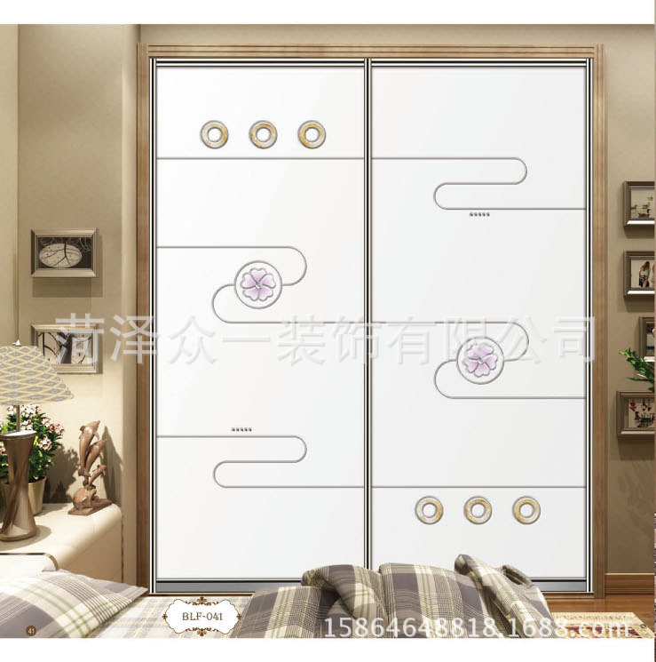 产品详情:自成立以来,菏泽众一装饰有限公司始终致力于衣柜门的开发和生产,现在包含了各种推拉门系列,例如经典UV,LV晶钻,韩国高端,欧式雕花。