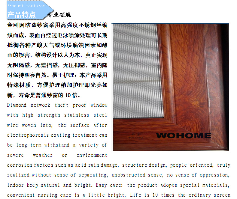 高品质的抗冲击性能,确实反映了防盗,防虫,通风,美观,安全等优点。
