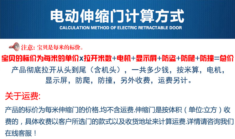 以下价钱是门的每米价钱,不包括机头和运费。运费将根据具体状况收取,制造商会将其发送到客户的要求和指定的货运部门。以最实惠的运费安排交货!(鸿运达,粤达,路路通,天地华宇,南北货运,同升,长通,鑫旺达,中兴达等一系列货运部等)。