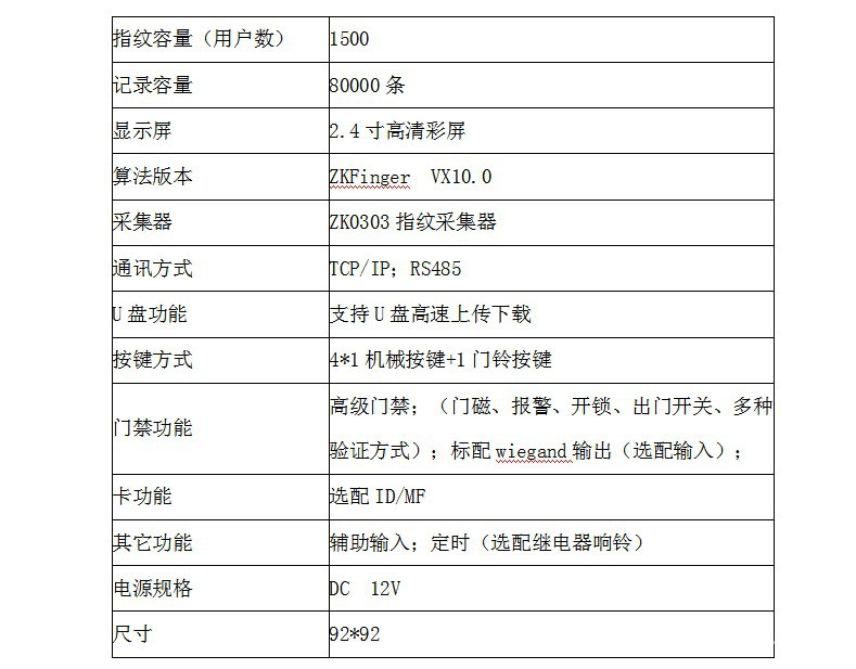 门禁功能:高级门禁;(门磁,警报,解锁,出口开关,多种验证方式);标准wiegand输出(可选输入);
