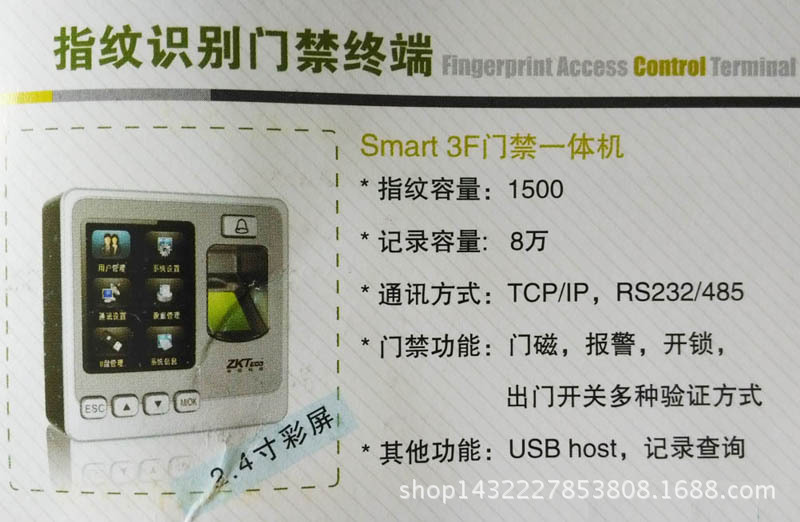 Smart 3F是中控科技在2014年推出的低成本(指纹)访问支配一体机,该产品使用86盒设计和2.4英寸高清彩色屏幕。用到标准的TCP/ip,RS485通讯方式,可以为客户提供更大的空间选择,并且适于大中型企业的办公环境。