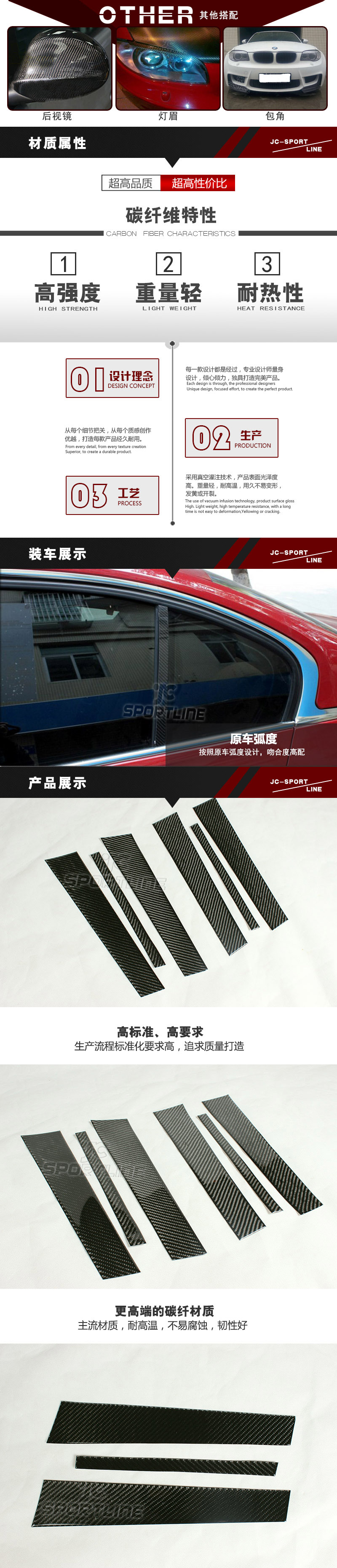 产品详情:[产品称呼]:宝马1系E87碳纤B 柱(适用于08-12汽车安装)