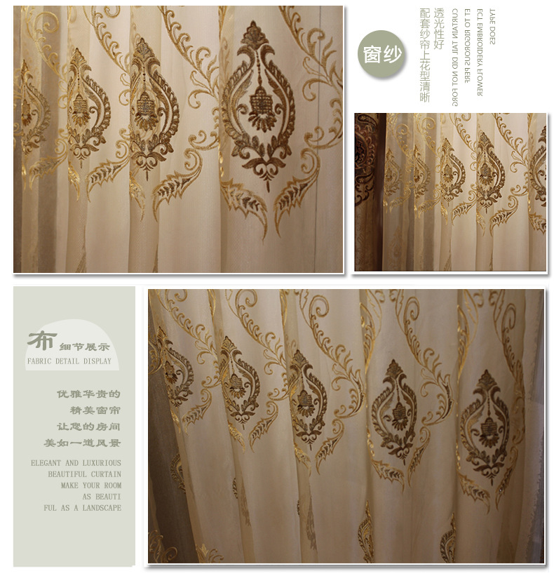 欧式客厅窗帘面料水溶绣花窗帘绣花纱厂家直销零切批发