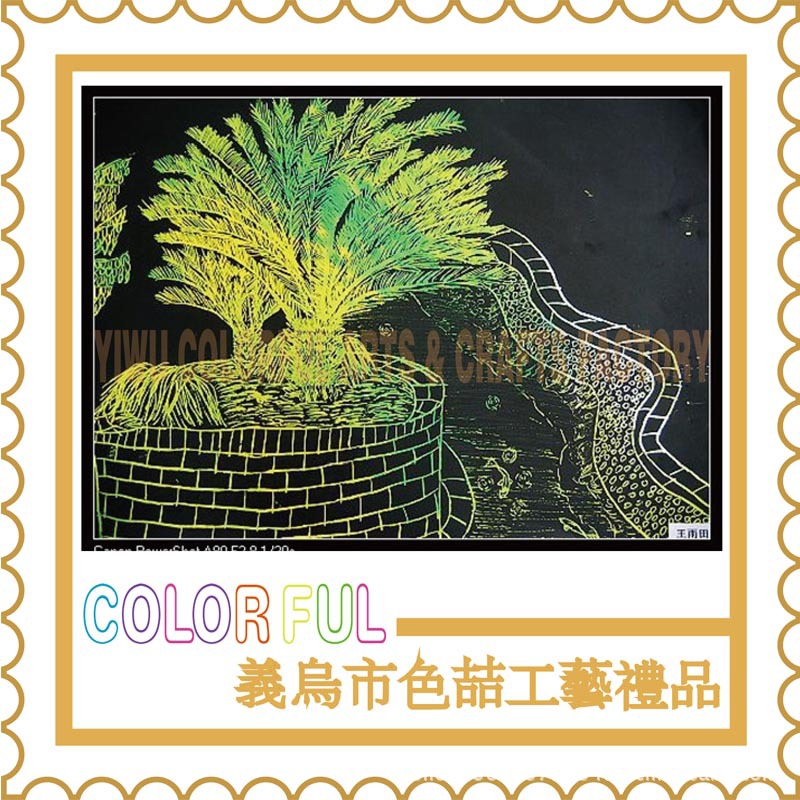 dear!义乌色喆工艺礼品厂向您郑重接纳我们所有产品均使用绿色环保原料制成,出口到全世界100多个国家,并受到了顾客的好评。在保证每个刮刮画的质量的同时,我们加大对刮刮画系列产品的研发力度,使刮刮画越来越多样化和实用。新的patry系列,造型吊坠系列,模版系列,便条纸等将为您和您的宾客带来不同的体验同时,我们还将以最特惠的价位为您生产最优质的产品。