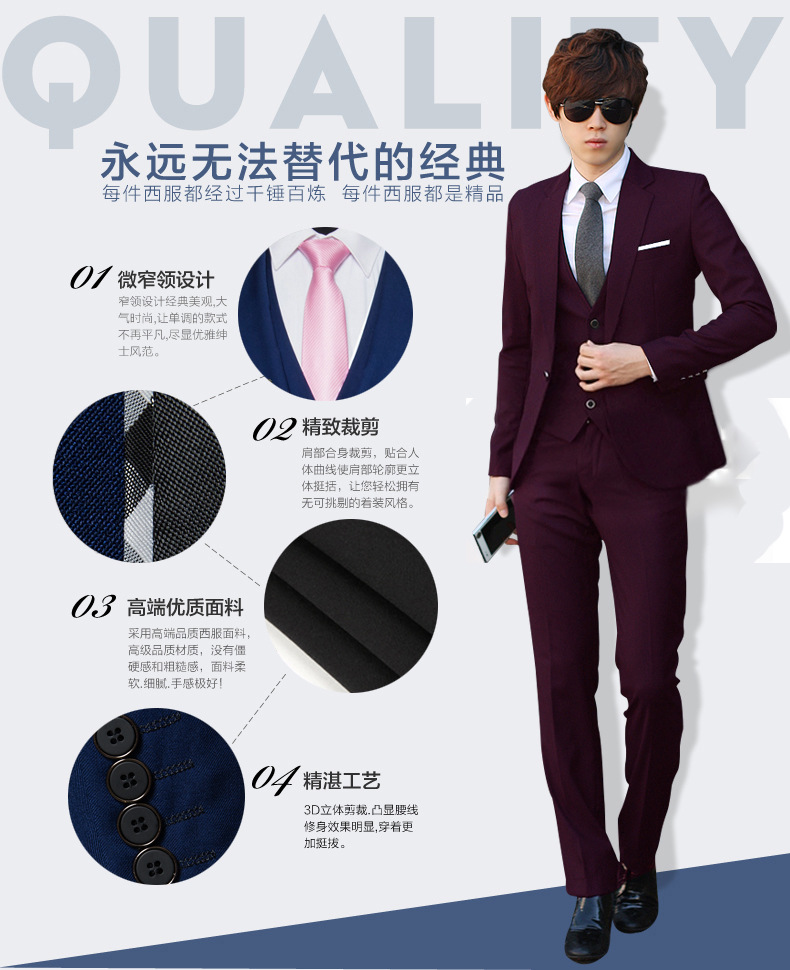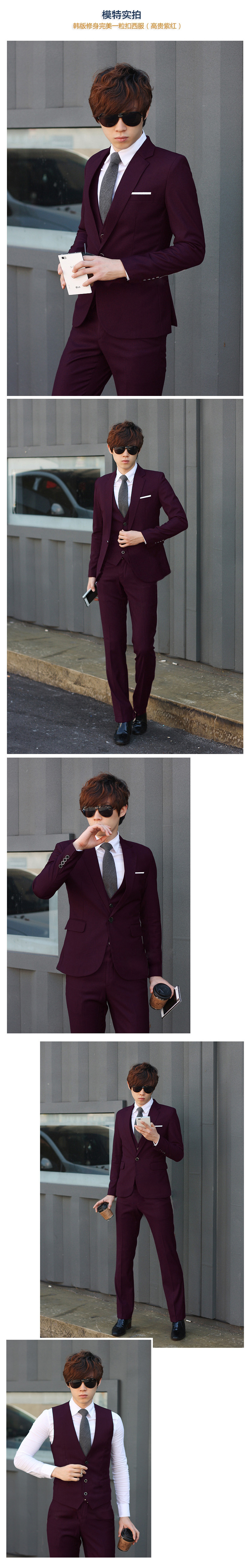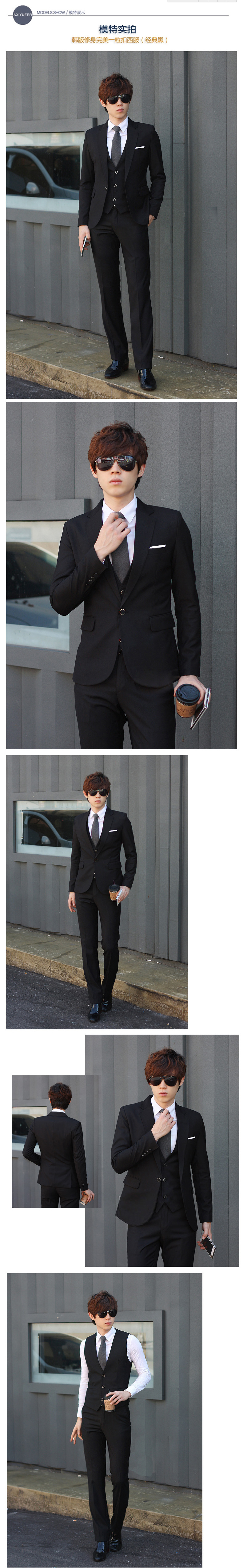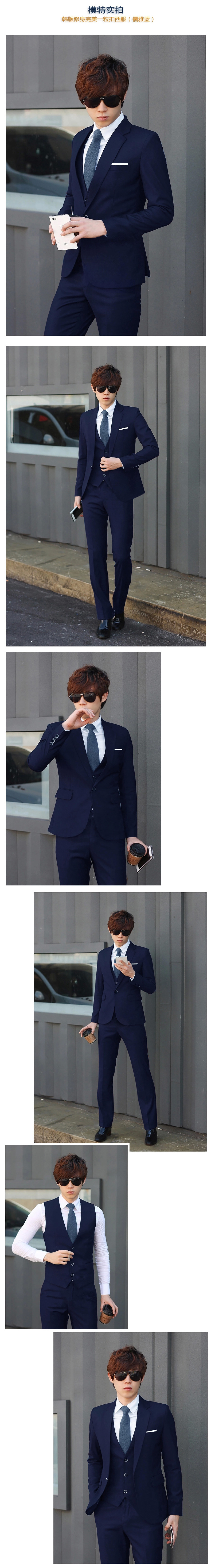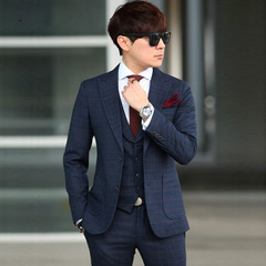 2015新款男士韩版三件套休闲修身小西服套装新郎结婚礼服男西服