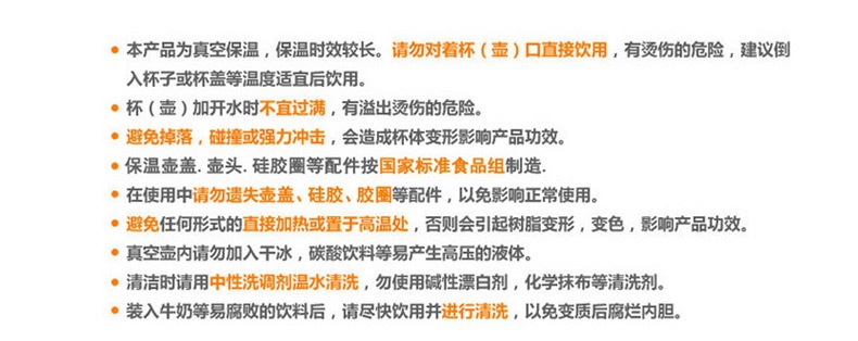 ■请勿长时间与酱油,汤等含盐物质(或其他酸碱物质)触及,以免生锈。