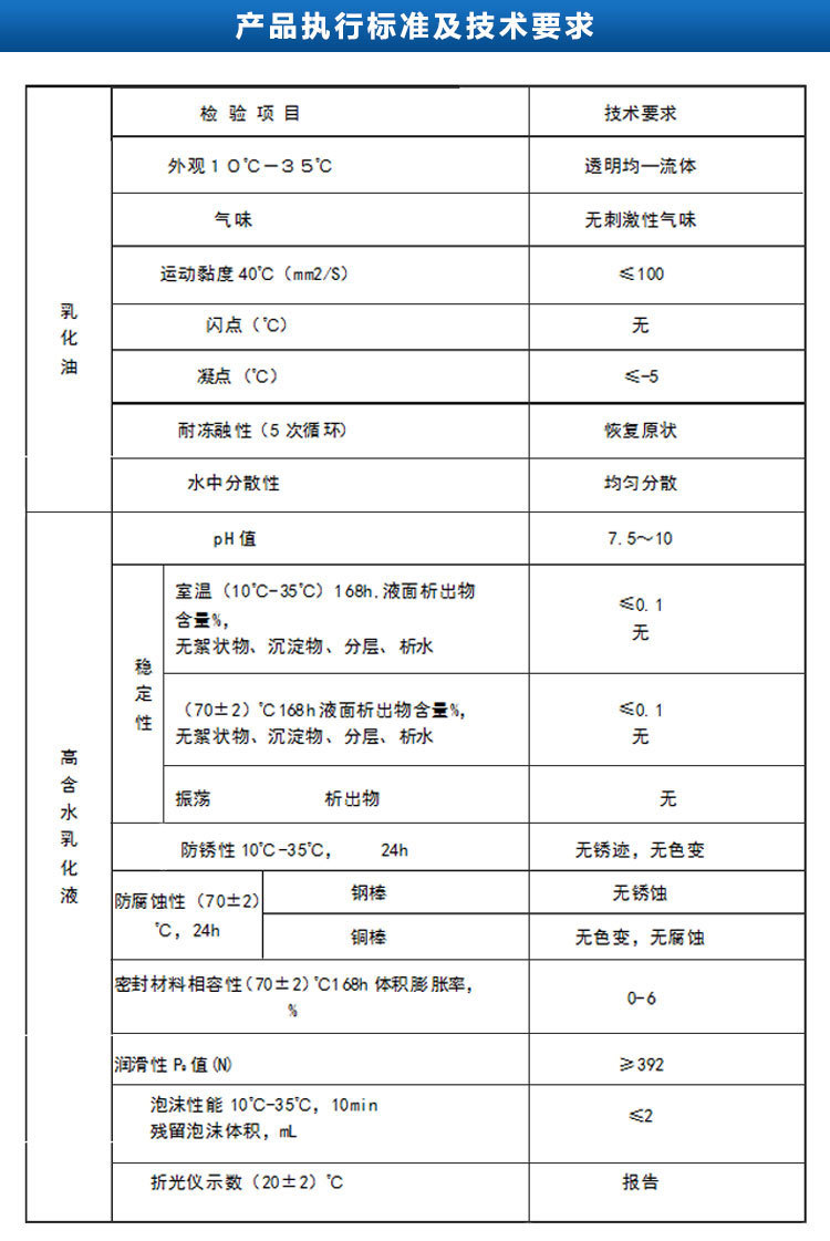 3.产品实施标准和技术要求:mt76-2011“液压赞同乳化油,