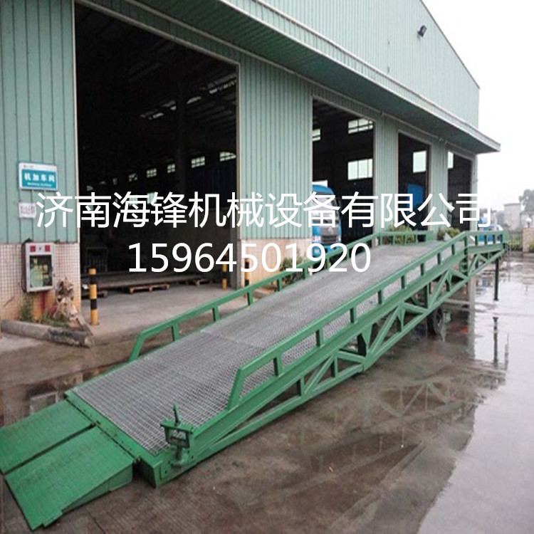 产品详情:移动登车桥是与叉车配合用到的特别货物装卸辅助装置,叉车可以直接从地面驶入车厢内部展开批量装卸操作。移动登机桥使用手动油压动力并且不需要连结电源。只需一个人操作即可实现货物的安全,快捷装卸,使企业缩减大量劳动力,使装卸作业效率提高一倍,加速货物流通,并赢得更大的经济效益。