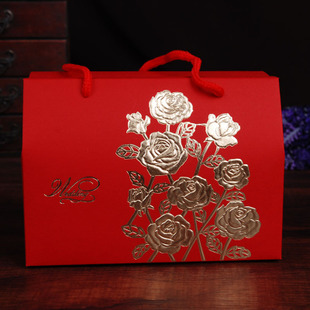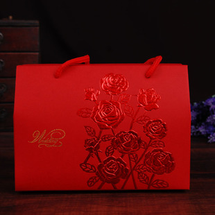 厂家直销创意喜糖盒新款结婚礼品盒红色烫金手提喜糖盒批发