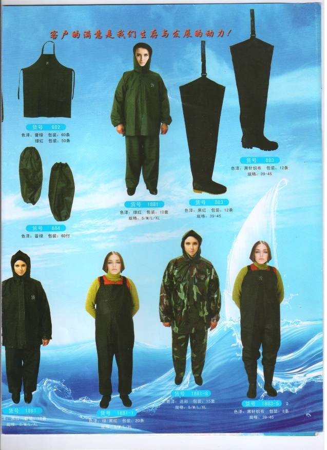 该产品由进口高级PVCplastic材料和P83-丁腈胶混炼压延制成。产品柔软,舒适,耐磨,并在产品中添加ABS材料制造,具备抗酸,抗碱,抗油,抗老化等特点。是传统橡胶产品的2-3倍,是传统胶渗水服的完美替代品。