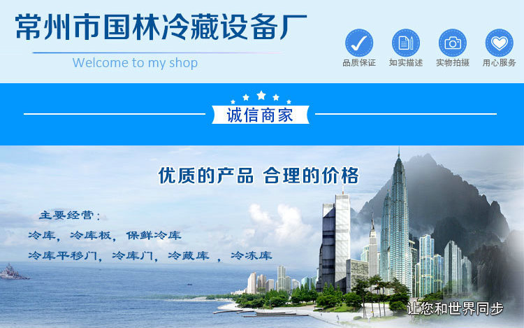 适用于一般冷藏,冰柜,船用冷库,恒温车间等仓库温度不小于-40℃的环境,民用建筑物仓库和建筑仓库。当仓库内外温差大于50℃,相对湿度大于80%,能起到良好的隔热和密封效用。一般使用厚度为106mm的门扇,化解了平常的手动冷库门开门繁琐的疑问。,占地大,电动冷库门造价高。在打开,传输,密封等方面独创。门扇由高压灌注机填入聚氨酯,总体发泡,保温精确。门采用手动推拉平移方法打开和关闭,轨道采用可变线型。当门就位时,它会自然下滑并门樘和地平压缩。当门打开时,它会离去门并同步升高,这缩减了密封条,门与地板之间的摩擦力,并且延长了密封条的使用寿命。
