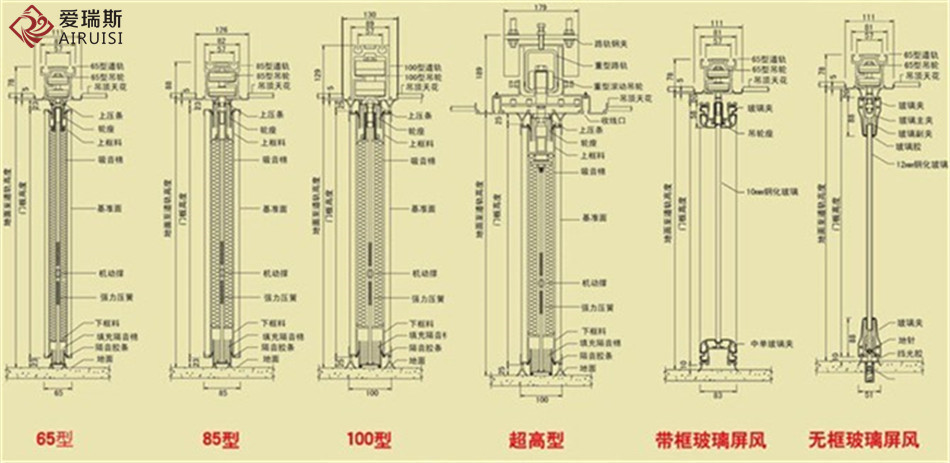 2.奇特的铝合金型材:用以轨道和分隔墙面板的铝合金为6063T6型,可以用到表面氟碳喷涂展开处理。