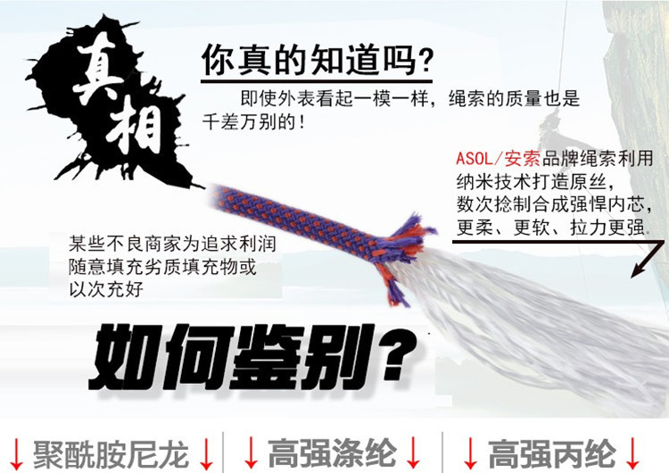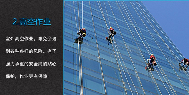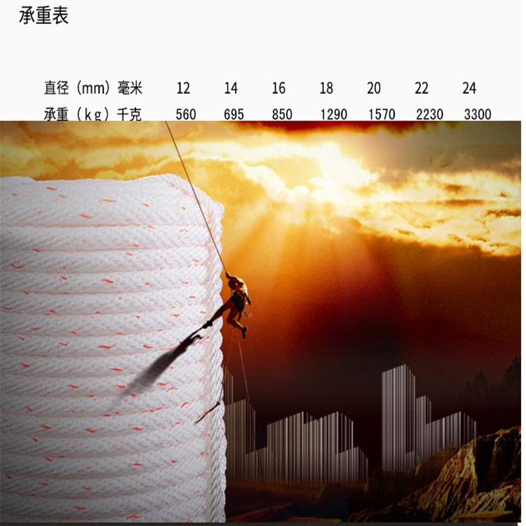 用途:用以在高空作业,道路运输,轮船码头和娱乐设备中保障人员和物体的安全。对于高空作业,攀岩等险恶职业或体育活动,安全绳18须要用到mm或更大的毫米,如果您不听取提议,后果自傲!