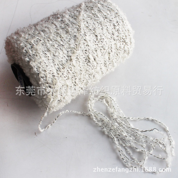 花式纱兼具高档的装饰外观,种类繁多,生产方式也很多。花式纱线的结构由@,装饰纱线和实心纱线组成。主纱装饰纱绕芯纱加捻形成效果。将固定纱以相反的捻向缠绕在装饰纱的外周上以固定花样,但也有不采用固定纱的情形。以下介绍几种一般而言花式纱的称谓和组成特点(线程):