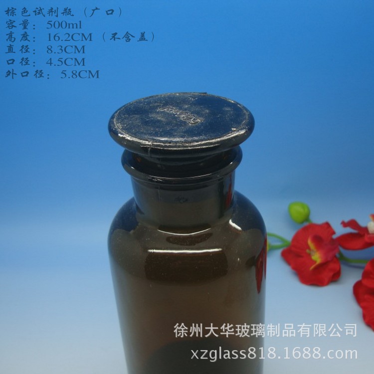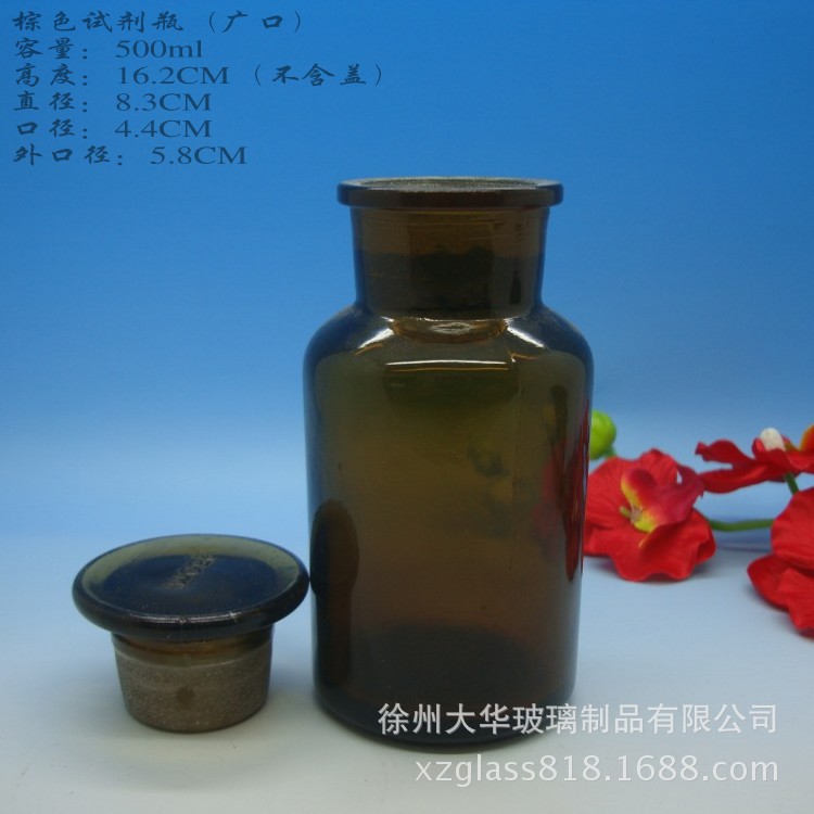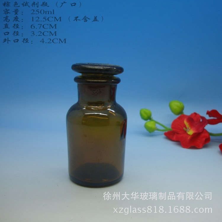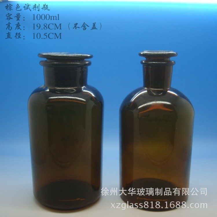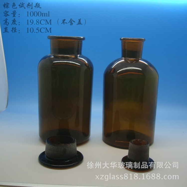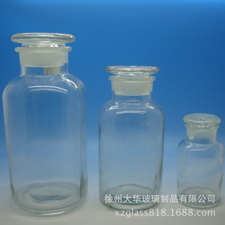 装有试剂的玻璃瓶可以根据其尺寸分为宽口瓶和窄口瓶。根据它们的颜色,它们可以分为白色(透明)和棕色。根据物质的不同,它们可以分为固体和液体试剂瓶。宽口瓶中带有固体。窄口液体瓶,棕色瓶用以避光的试剂,地面塞子瓶可防范试剂吸收水分和浓度变化,该试剂瓶不耐热。瓶口和瓶盖均使用磨砂设计,以维持密封并预防试剂泄露。