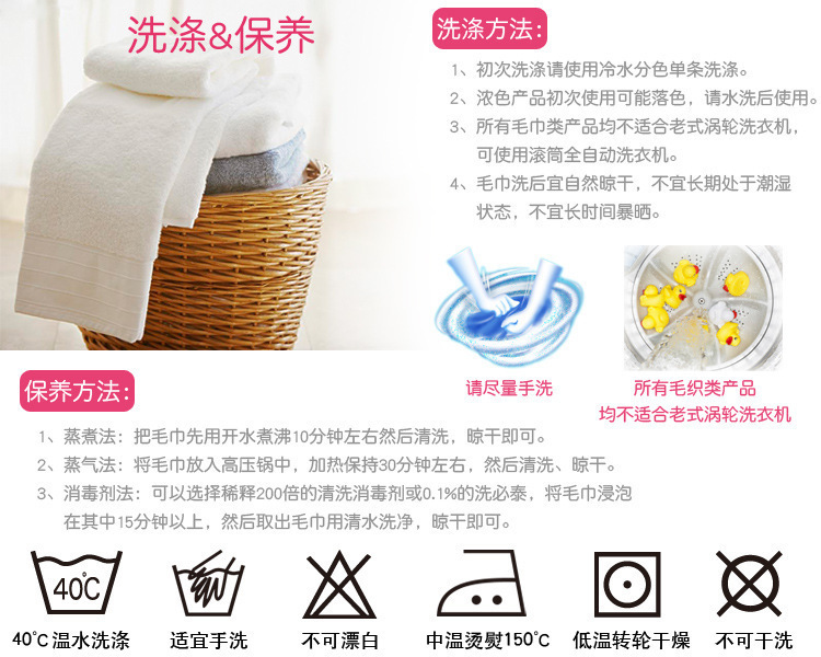 7.为什么竹纤维毛巾是婴儿的首选?婴儿的皮肤最软弱,最容易受到各种细菌的侵害。妈妈总是为婴儿选取最柔软,最舒适的棉毛巾。但是,您是不是曾考虑过纯棉毛巾在使用过程中会繁殖出无数细菌,母亲会擦拭婴儿的身躯,唾液,并擦拭婴儿衣物上的奶渍和米渍,从而更进一步加快细菌的繁殖并威胁婴儿的身心健康。用清洁剂去除棉毛巾中隐匿的细菌,细菌会在短时间内繁殖。频繁使用消毒剂会带来麻烦,并侵害婴儿娇嫩的皮肤,该怎么办?让竹纤维毛巾协助您!竹纤维毛巾不仅可以维持柔软舒适,而且具有很强的抗菌能力,可以让您放心。