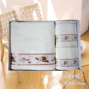 新品“促销礼品”32层纱纯棉提花草帽批发毛巾浴巾两件套可定制广告¥11.00