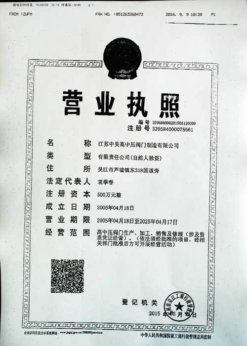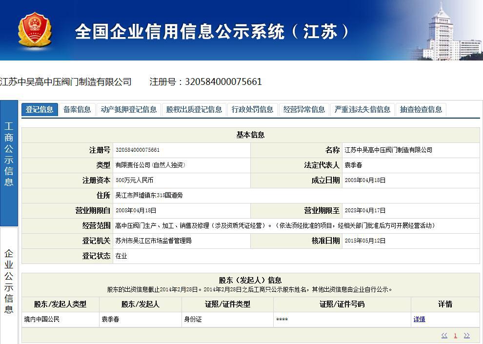 江苏中吴高中压阀门制造有限公司信用信息宣传请点击:http://gsxt.saic.gov.cn/