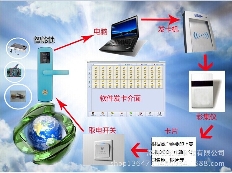 6.可以添加的功能:根据酒店的需,可以添加智能卡保险柜,智能卡取电,智能卡乘升降机,智能卡结算和付款等方法,实现一张卡用以多种目的,这将有助于提高酒店的品位,并缩减酒店的资源和人力。