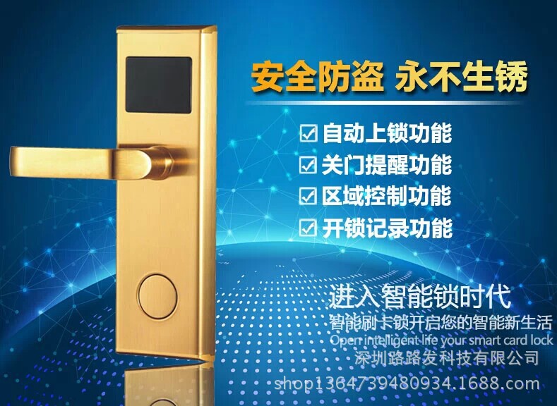 9.锁中有一个实时时钟,可以有效控制钥匙卡的使用时间;防范客人恶意拖欠房费;系统管理软件可与酒店管理系统等连通,实现多合一刷卡功能,操作简单
