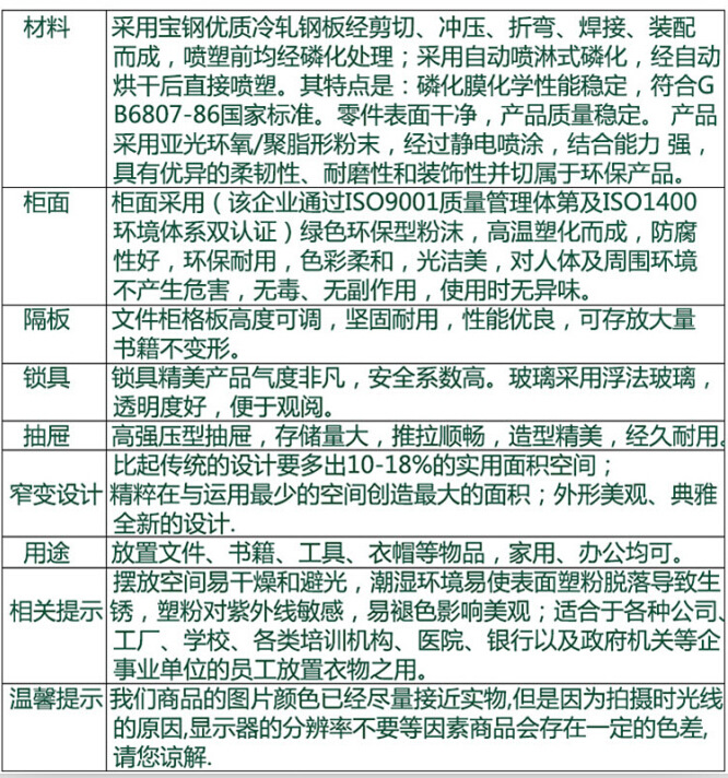 产品详情:苏州格林特家具有限公司是一家主要生产钢制家具,金融保险,学校设备,密集的架子,书架,文件柜,诊疗设备等的公司,并逐步在全国主要城市成立有力的营销网络和服务体系公司的科学技术人员经过无数次实验和检查,最后生产出了使用静电喷塑,优质原料和科学技术的环保办公家具,以保障上班族的安全。