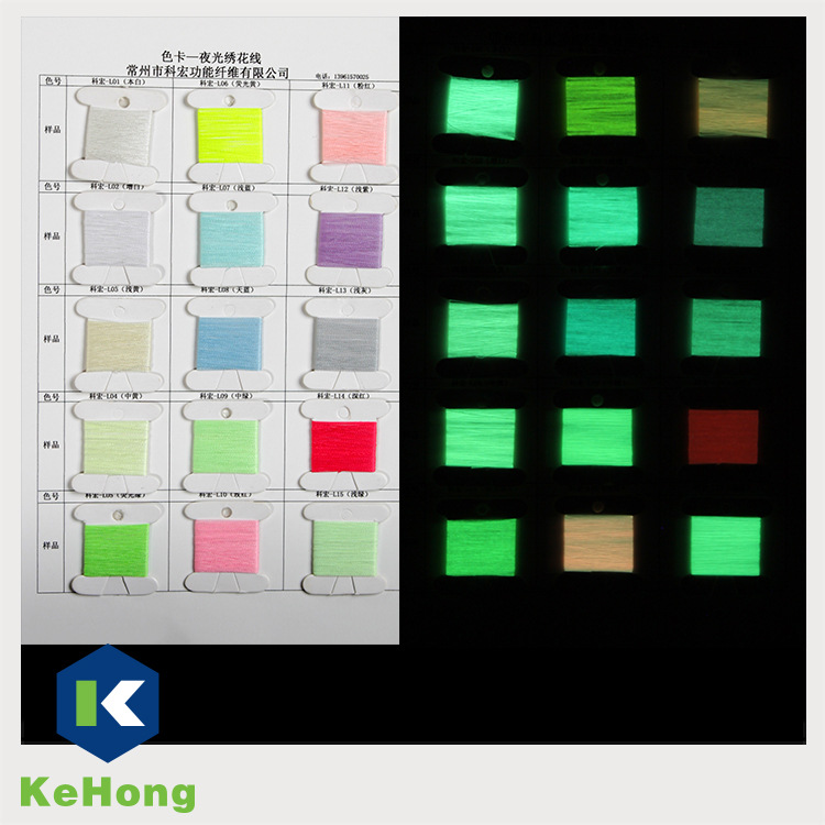 产品优势:与传统的硫化物及其他发光材质相比之下,科宏发光绣花线绝对安全,环保,并相符欧美日等国际市场严苛的检测规范。