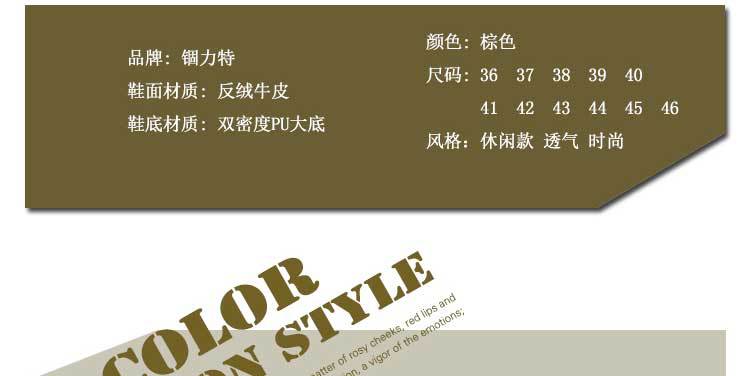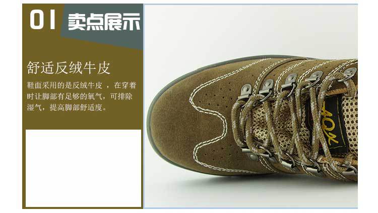 鞋面:采用优质厚绒面牛皮制成,具有坚固,耐折,柔软,舒适的特点;