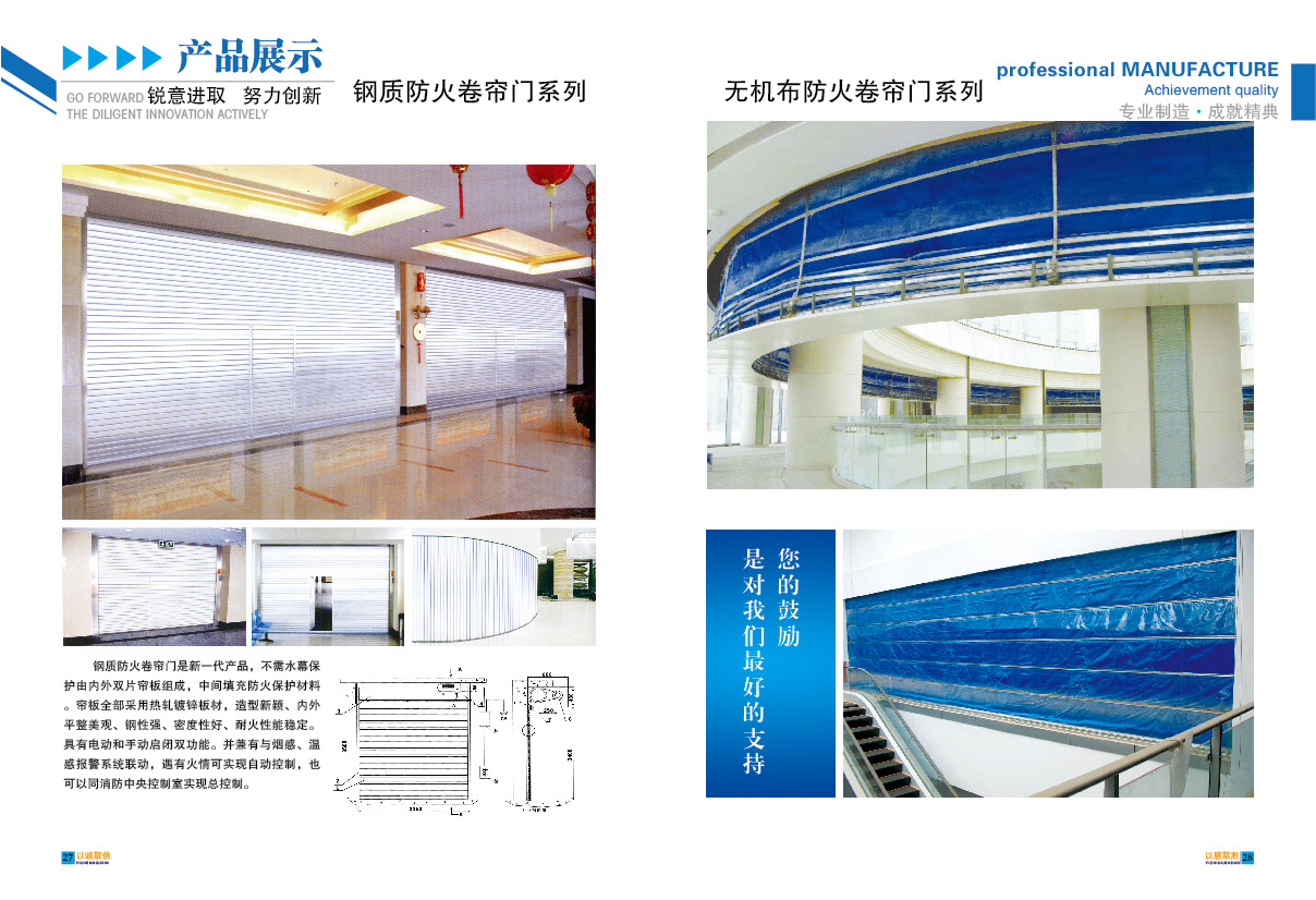 防火卷帘门像防火墙一样充当程度防火分区。它由一个窗帘板,一个座板,一个导轨,一个支架,一个卷轴,一个柜子,一个控制箱,卷门机,限位器,门,手动迅速获释开关设备构成,由13个组成诸如按钮开关和保险设备之类的构件一般而言安装在不简便用到防火墙的地方,例如:开放式升降机厅,自动扶梯,百货店的大型营业厅,展览馆的展览厅以及建筑物的一部分防火卷帘门在建筑物项目中取得了广泛的应用。