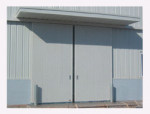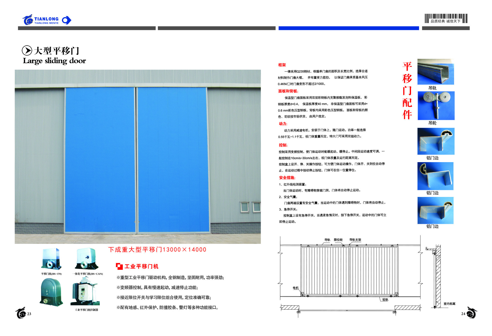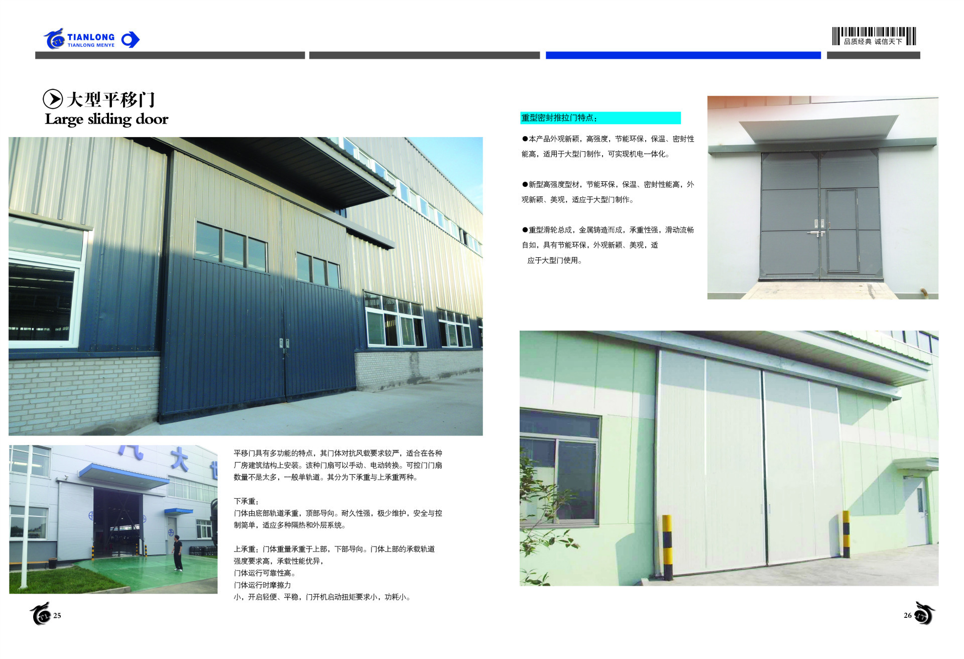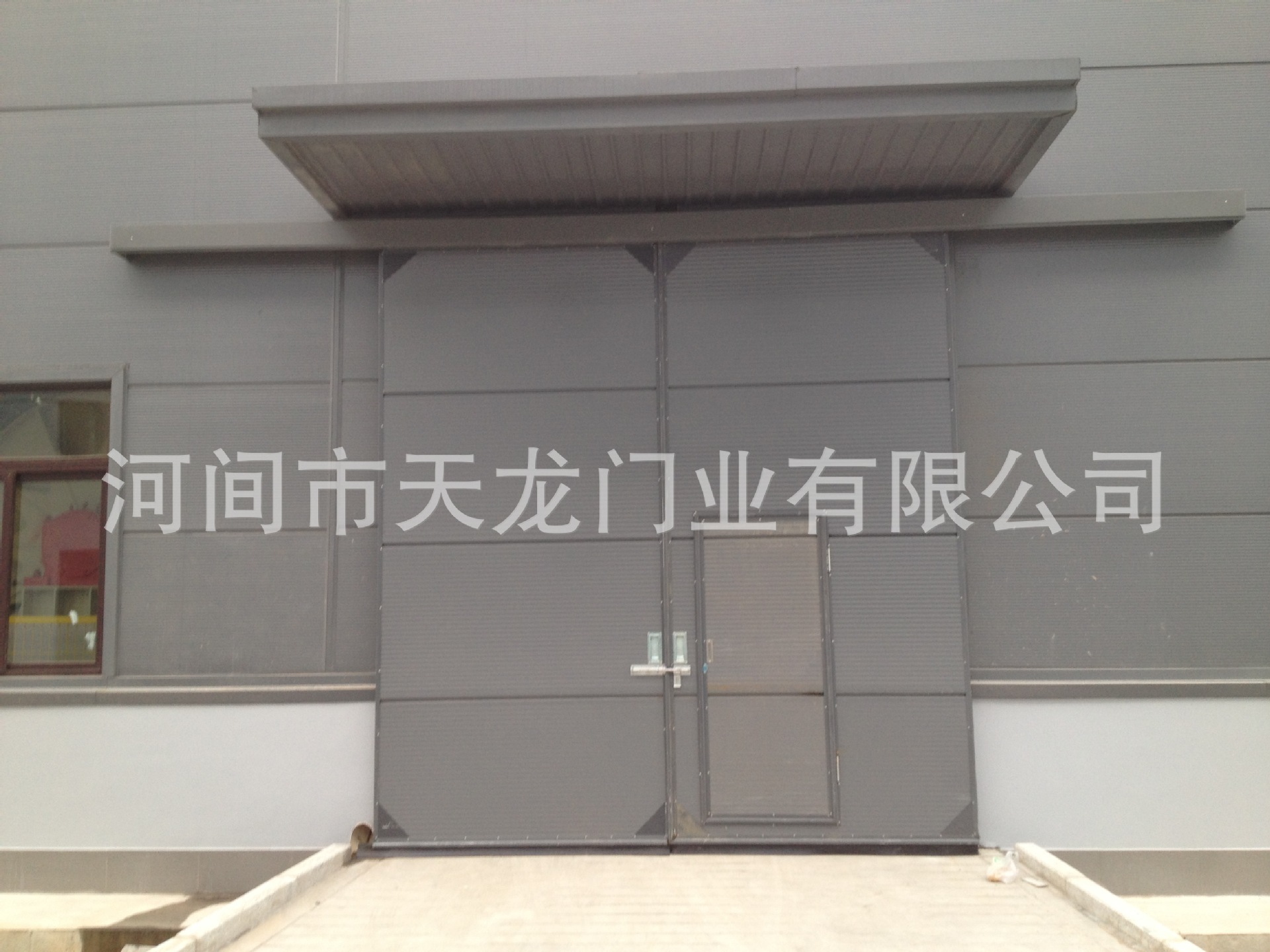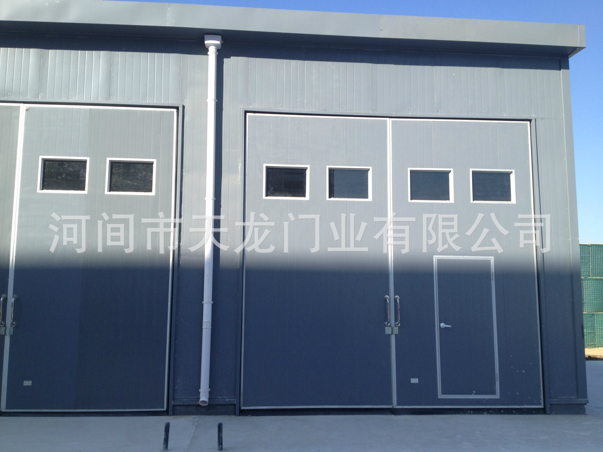 绝缘型门扇面板使用双层彩钢板内冲聚氨酯发泡料绝缘板,彩钢板厚度d=0.4,绝缘板厚度40-100(mm)。