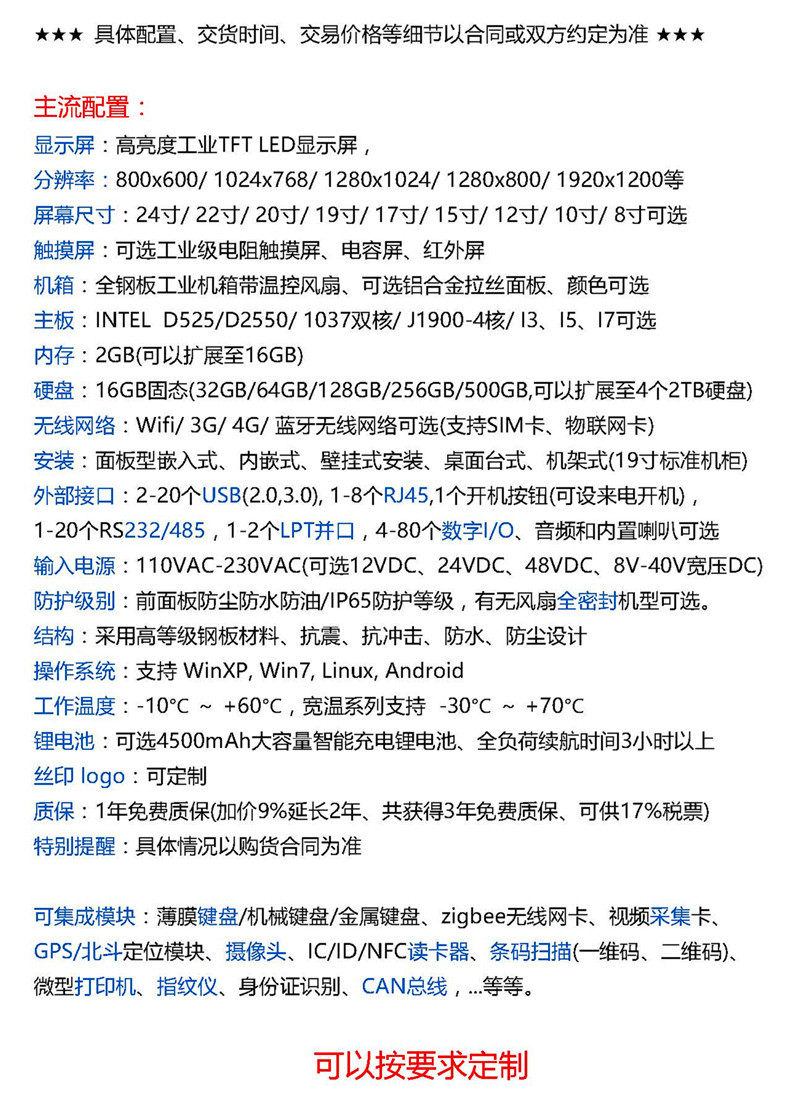 外部接口:RS232/485/RJ45/USB/HDMI/VGA/AV/LPT并口/GPIO