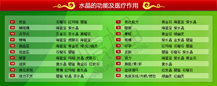 石榴石:可以使人们具有无法抗拒的魅力,吸引幸福和永恒的爱情,增强自信心,与抑郁症作斗争,可以增强活力,活力和耐力,利于生殖系统和相关器官的健康;促进再生和血液循环,具有美容和复兴的作用。