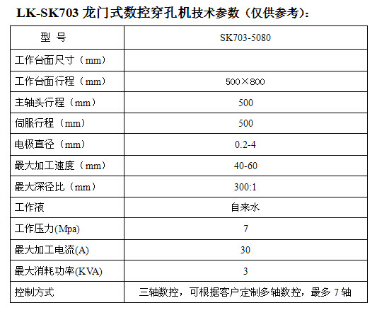 数控穿孔机运用电火花放电腐蚀的法则,并用到空心圆形电极对各种导电材质中的深小孔展开高效放电加工。主要用以加工线切割孔,燃油喷嘴和燃油泵喷射孔,化学编织喷丝板的喷丝孔,油压和气动组件,机油通道孔,滤板,筛板和引擎中的冷却孔用各种传统的加工方式很难加工。