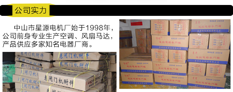 产品详情:中山市星源电机厂发端1998年,是该公司的前身,专门从事空调机,风扇马达的生产,产品已提供给许多电器制造商。