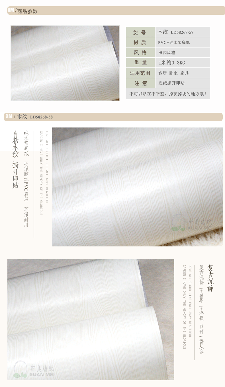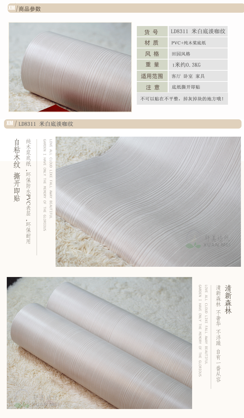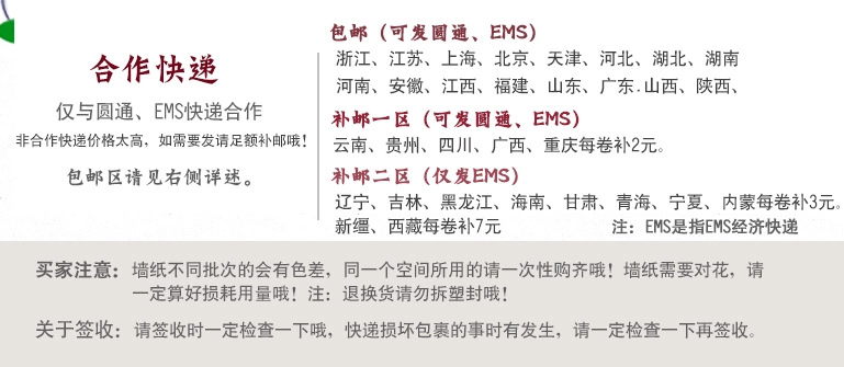 2.天然植物纤维墙纸,铺装前请勿起泡,更绝不在当地弄水了。