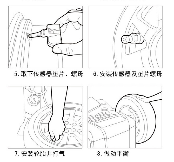 当用户首次采用该产品时,在安装了4个传感器之后,该传感器将检测轮胎压力的变化(未安装时为0Bar,在安装后为轮胎压力)。您可以在安装前开启显示屏。在安装过程中,您可以在显示屏上见到轮胎压力的变化!安装后,敞开显示屏,您需等候0-4分钟才能见到轮胎压力数据的变化!
