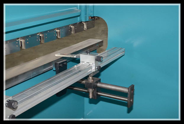 后挡料的调节由0.55kw电机驱动,并在减慢后由螺杆驱动。当按“+”和“-”进行调整时,可以向前或向后调整后挡料,(数字显示尺寸位置)当电机调整不能达到所需的调整值时,可旋动手动调节轮将执行手动微调,以调整确保所需的调整值。