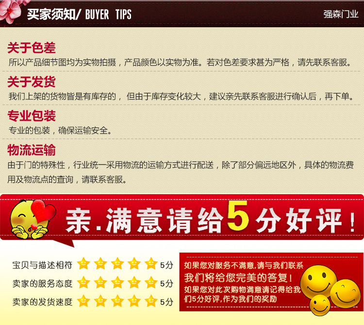 佛山市三水区西南街强森门业制品厂在地形图上查阅主要操作:提高生态门,韩式生态门,橡木门,复合实木门和其他产品。公司秉承“务实,勤劳,负责”的企业精神上,以诚信,共赢,创新的经营理念营造不错的企业环境。它用到全新的管理模式,健全的技术,周到的服务和杰出的品质作为生存的根基。,我们自始至终坚称客户至上,用心服务于客户,并坚称以自己的服务感动客户。