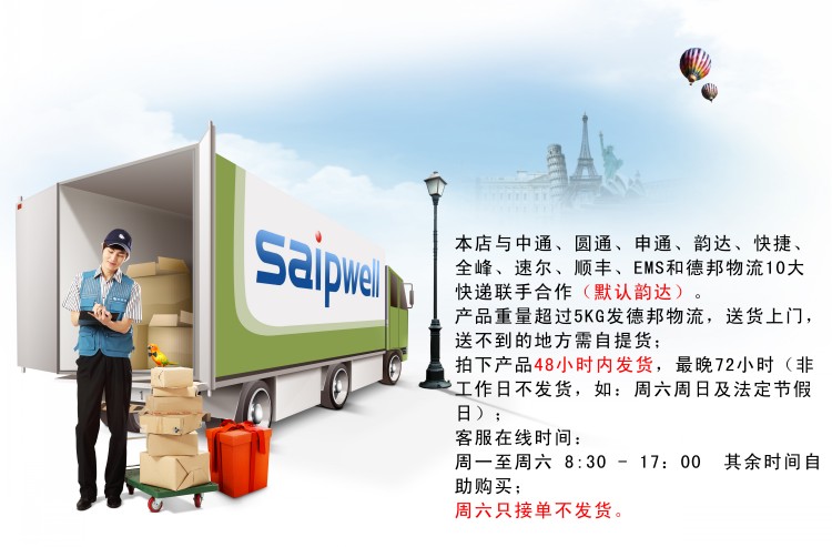 快递:取决每个快递公司的效率,在正常状况下,我们将在您付款后48小时内发货,如果快递公司没有问题,江浙沪将在第二天到达,其他地方将在2-5天内到达。我们将竭力为您安排交货时间。如果在快递过程中时有发生意外状况,将引致快递。耽搁了,期望你能了解。
