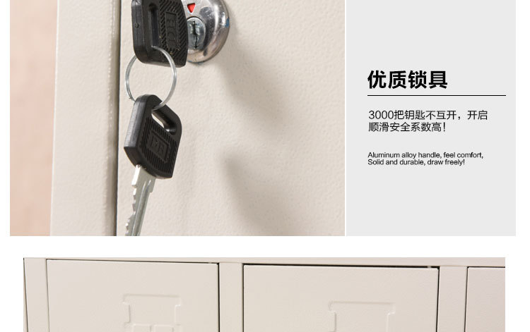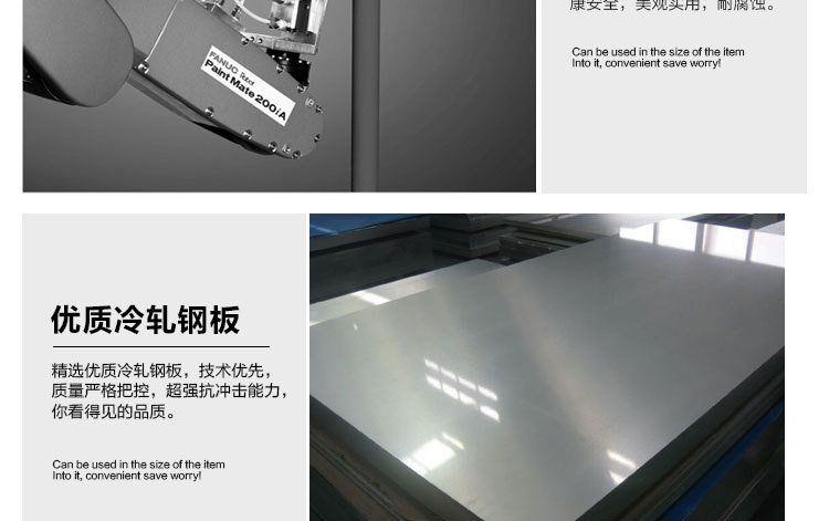 1,材质:我厂采用优质宝钢冷轧钢板0.5mm(一般而言产品)0.6mm(中档产品)0.7mm(高端产品)来满足客户的不同需要;有不同厚度的产品有现货供应,因此可以对机柜开展切割,冲压,弯曲,焊接和组装。2。底面:底面采用先进的喷涂工艺,高温塑化,耐腐蚀性能好,环保结实,颜色轻柔,光滑美观。3。网格:文件柜网格可调,提高,结实结实,性能好,可寄存大量书籍而不会变形。4。锁具:精美的锁具使产品异常大方,安全系数获取了很好的保证。玻璃采用浮法玻璃,透明性好,便利观看。5。抽屉:高强度压入式抽屉,储物容量大,滑动顺滑,造型精美,可在不同环境下采用