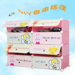 产品详情:[免费送货]DIY鞋柜卡通门收鞋柜多层塑料鞋架魔片组合鞋柜