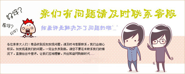 当您收到裹时,请不必急切在收据上签名,请在快递员面前将其敞开以进行现场检查。如果包装损坏或遗失,请拒收它!并当场联系店主(电话号码在快递单上)一旦签名,就意味着您早已确认了商品的数目,内容和完整性,并且店主将无法向快递公司要求买家!!也请原谅我们,由于商品不一致,缺失或损坏导致的损失,我们的商店将不再负责!如果您以后有任何疑问收到货后,请马上与我们联系!掌柜与买家协同化解疑问。让买家百分百令人满意地退货!最终祝买家在本店购物愉悦!