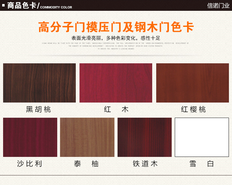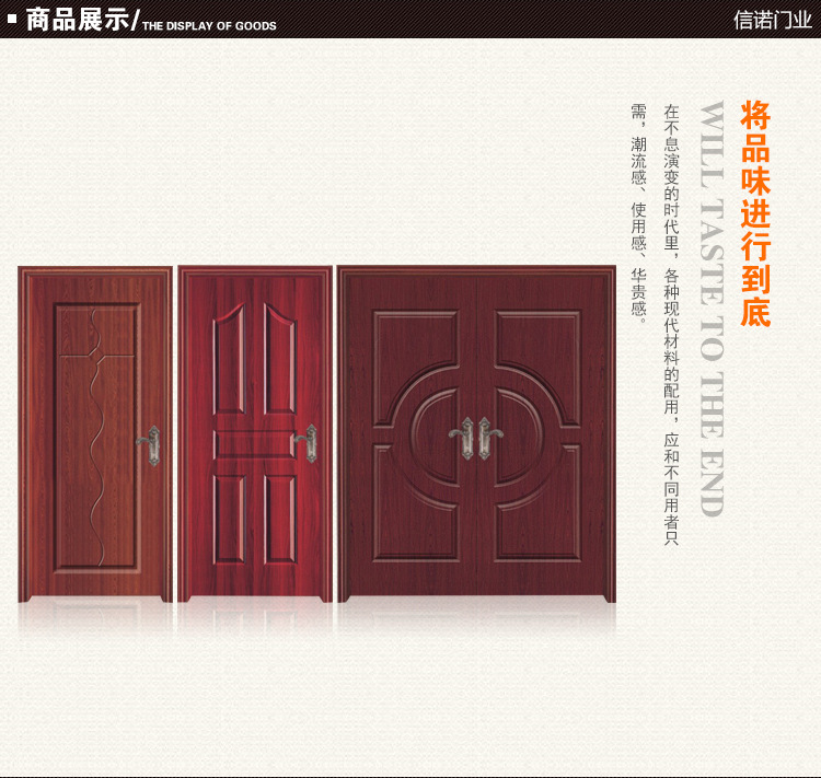 信诺品牌将与时俱进,不停进取,全盘贯彻“绿色环保,和谐发展”的发展理念,奋斗制作美妙的室内门系统产品,树立行业领先品牌。信诺人情愿与您一齐创造高质量的工作和生活环境。