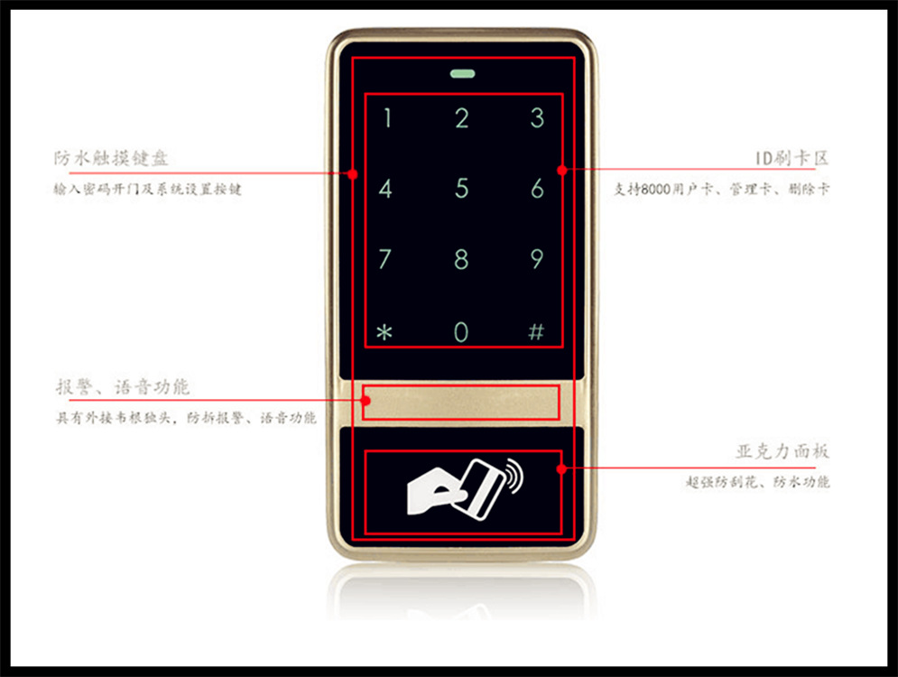 *可以设立管理卡(添加卡和删除卡),联网后可以连续添加卡;
