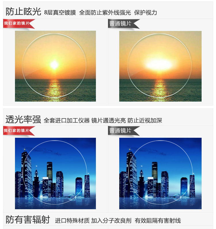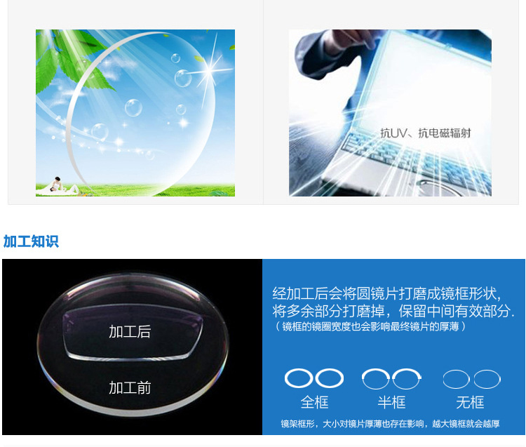 - 颜色普通近视镜片,防辐射近视镜片,高清防蓝光近视镜片,专业电脑防蓝光近视镜片