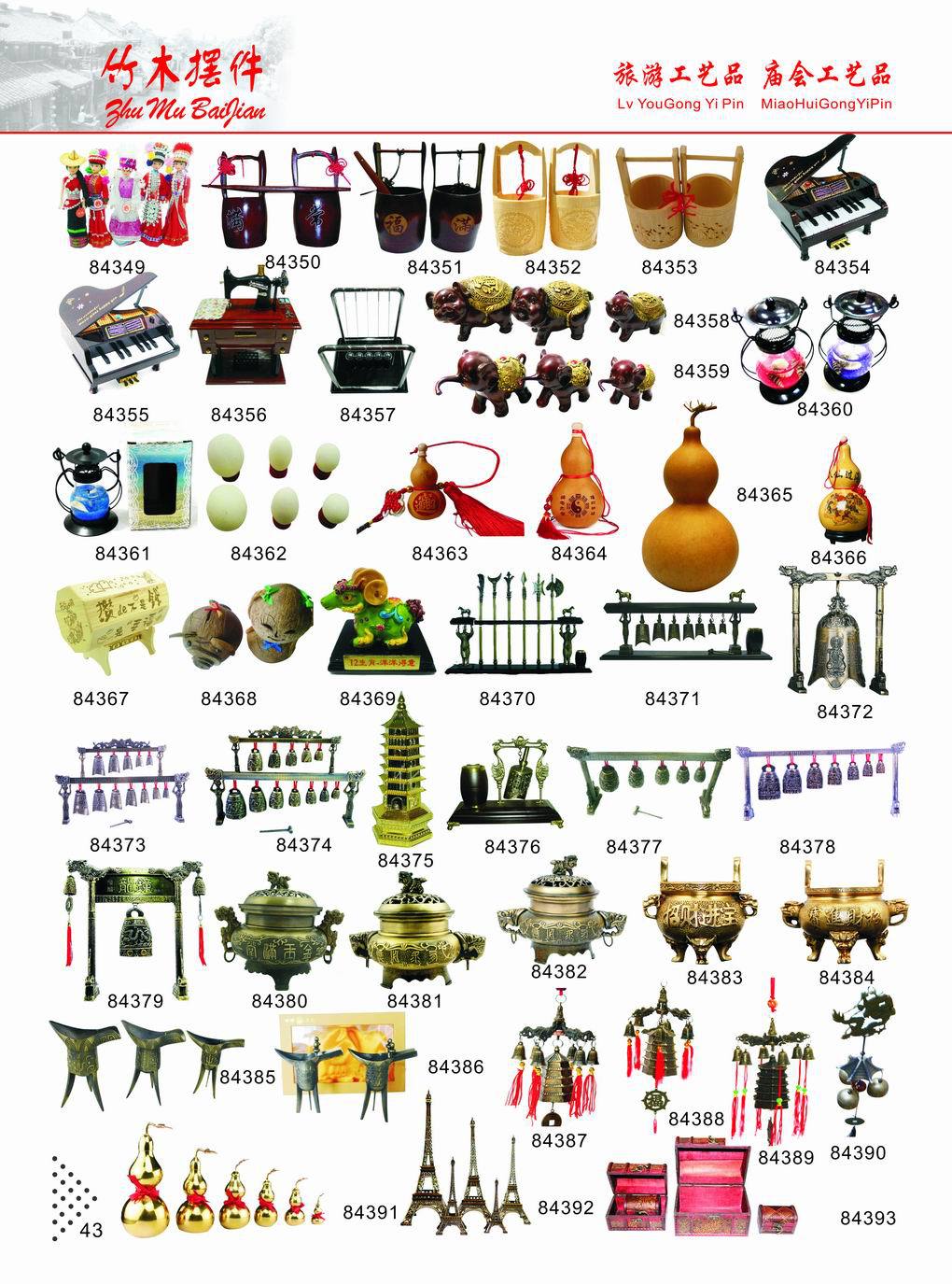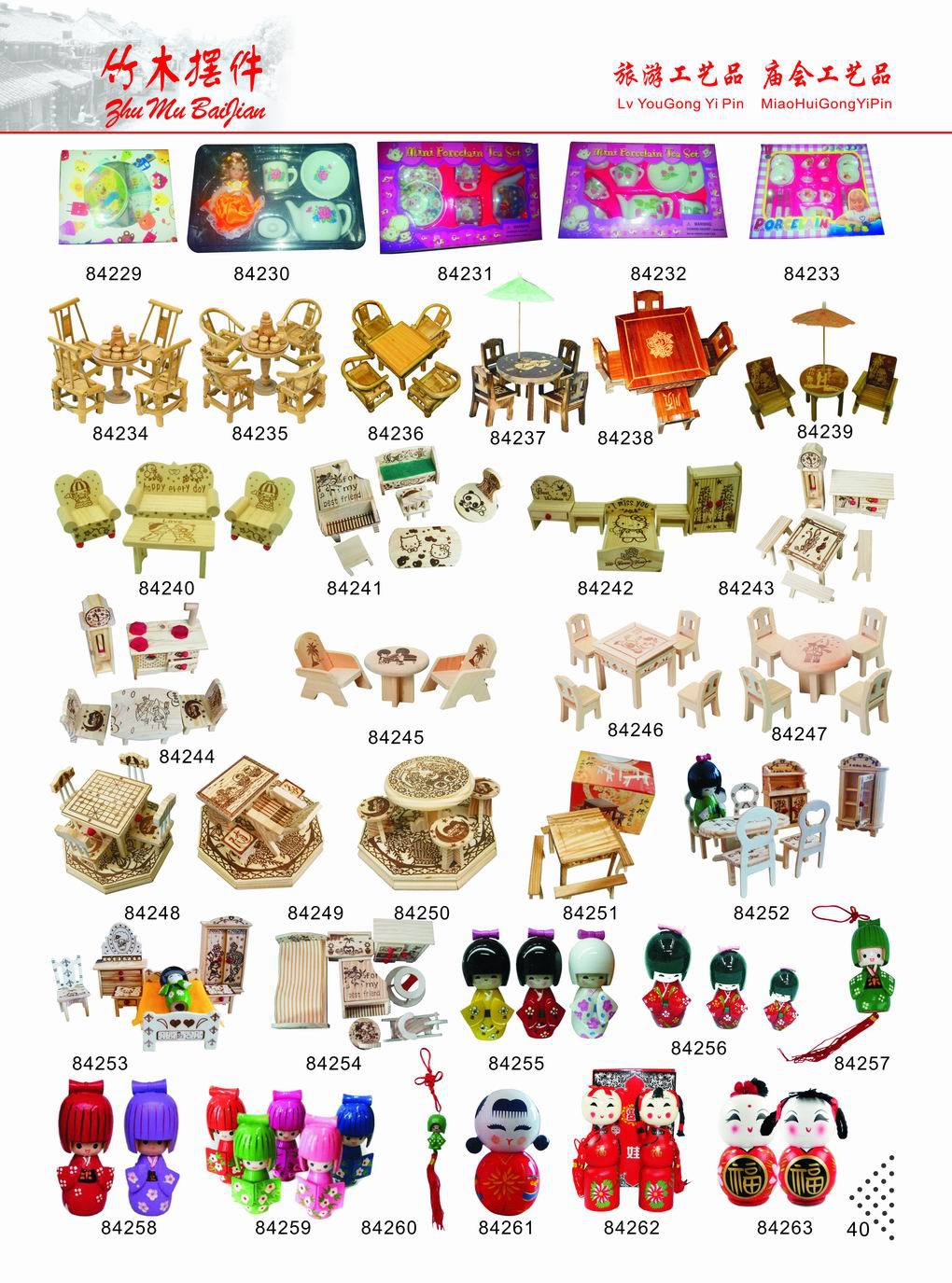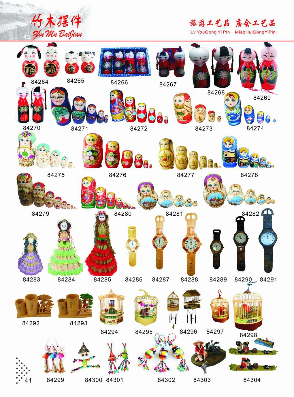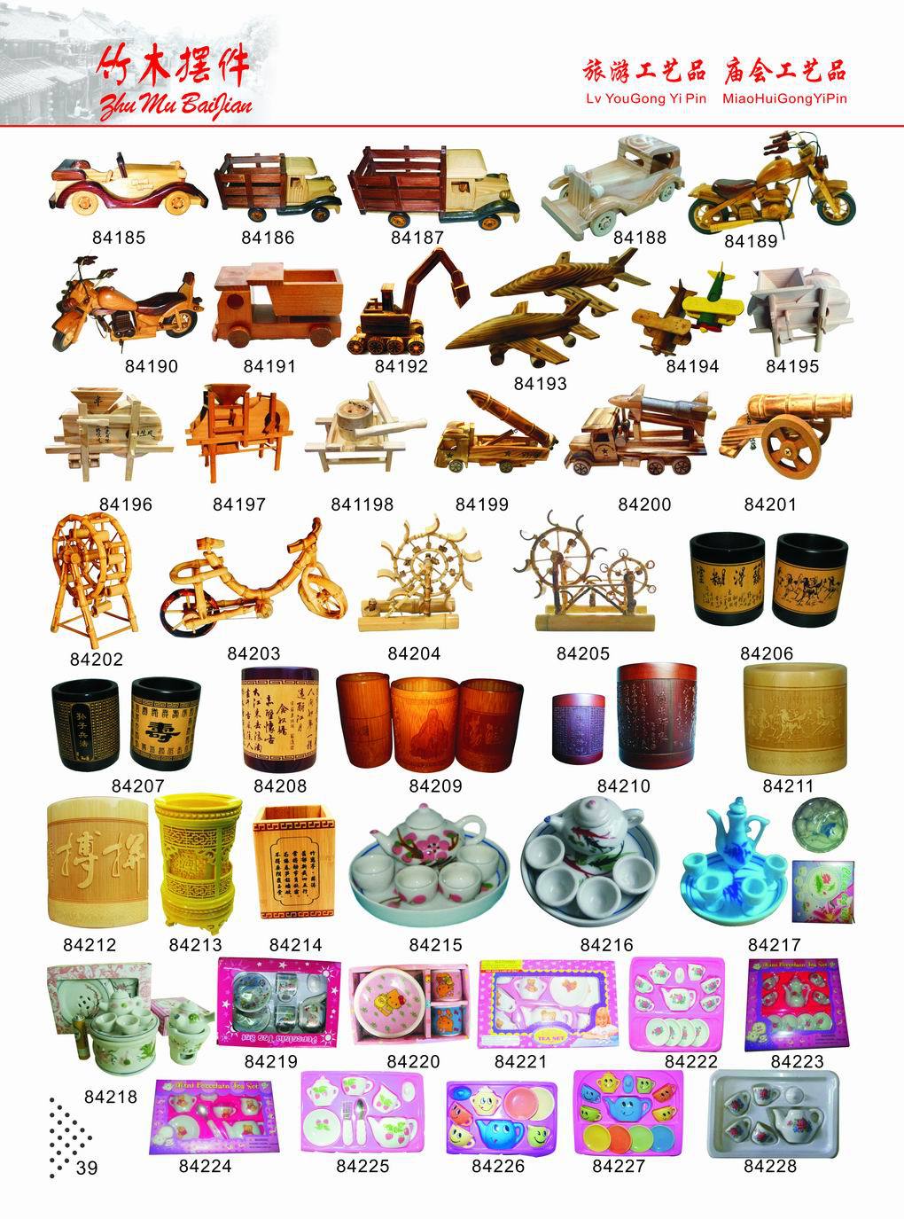 ------产品齐备,类型繁多(近2000种精巧产品),可以满足您一站式购物的需要。只要您在这个行业中,我们一定会找到您令人满意的产品。产品主要包括竹木幼儿玩具,必需品,竹木兵器,剑,按摩器,竹木工艺品摆件,竹木珠汽车挂件。