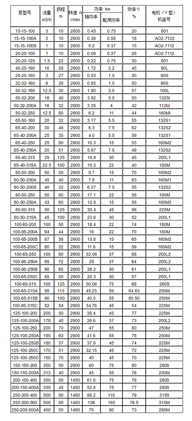 5.ry型风冷热油泵的性能参数表如下: